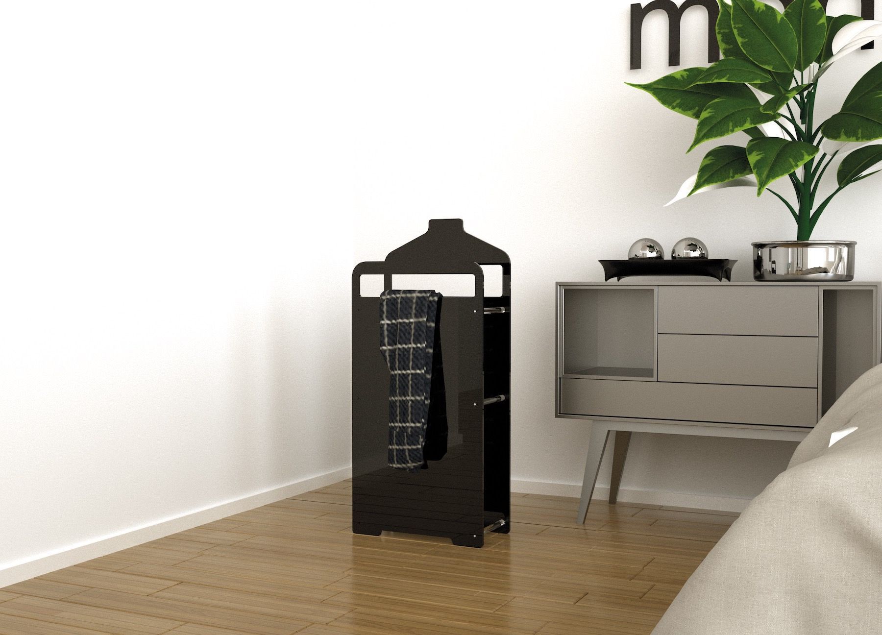 Il servomuto in plexiglass Hombre nasce per semplificarti la vita ogni giorno, con uno stile contemporaneo che valorizza qualsiasi ambiente. È uno di quei complementi d’arredo che, una volta provati, ti chiedi come hai fatto a farne a meno: sempre pronto ad accogliere giacche, pantaloni, borse e accessori, mantenendo la tua camera o cabina armadio ordinata senza alcuno sforzo.