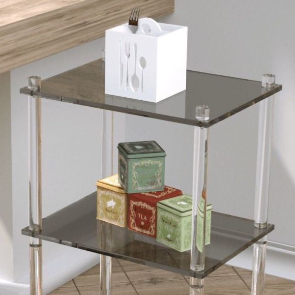 I vassoi in plexiglass (PMMA) da 10 mm di spessore donano robustezza e un tocco di eleganza grazie alle superfici lucenti e ai bordi rifiniti. Disponibile in quattro finiture – trasparente, bianco, nero e fumé grigio – Arianna si adatta perfettamente a stili d’arredo moderni, minimalisti o classici, offrendo la possibilità di creare un piacevole contrasto di colori e trasparenze. Le ruote piroettanti con freno assicurano movimento fluido e sicurezza, rendendo il carrello estremamente pratico in ogni situazione.