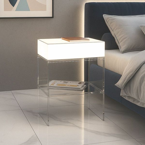 Il comodino moderno Anita rappresenta un perfetto equilibrio tra estetica, tecnologia e funzionalità. Nato per trasformare la camera da letto in un ambiente elegante e luminoso, Anita è realizzato con una struttura principale in PMMA (plexiglass) trasparente da 10 mm, materiale noto per la sua brillantezza, resistenza e capacità di integrarsi visivamente in qualsiasi tipo di arredamento.