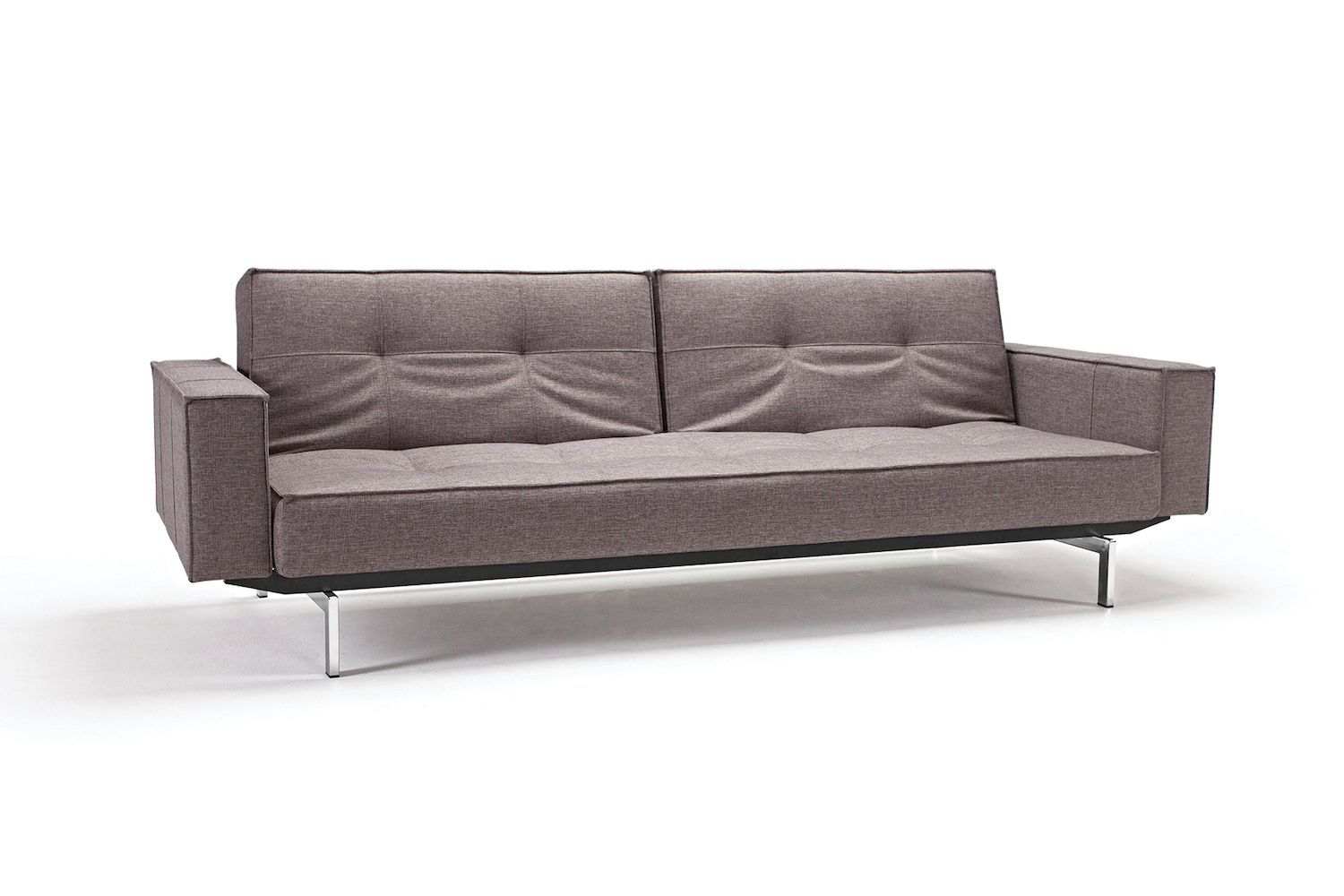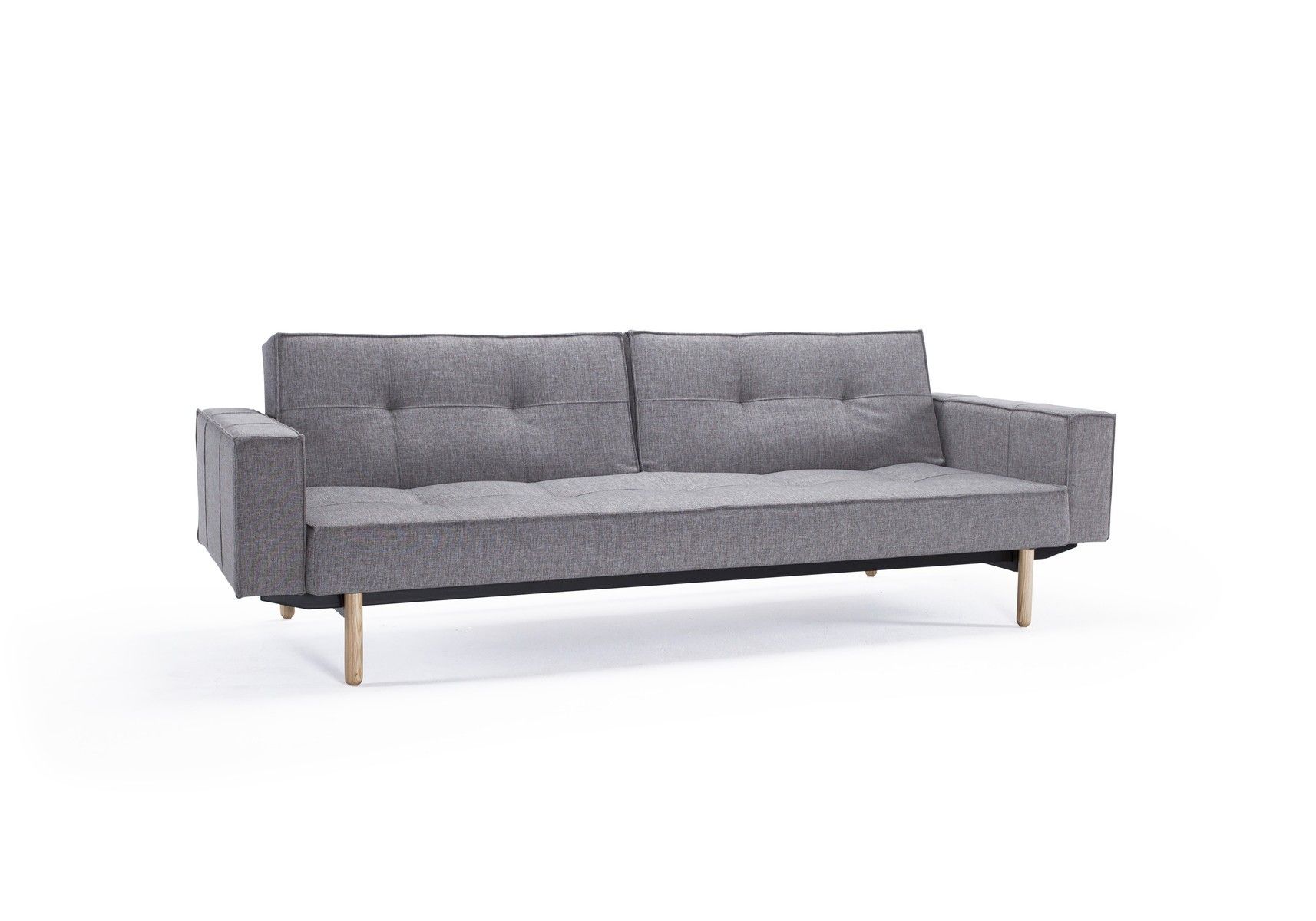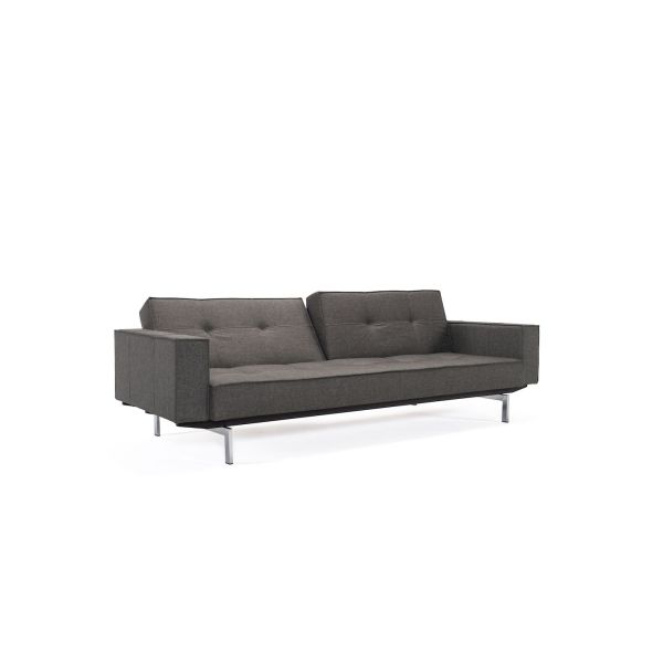 Funzionalità e design scandinavo si coniugano perfettamente nel divano letto ad una piazza e mezza con braccioli Splitback, un vero e proprio gioiello di stile contemporaneo, che non rinuncia alla qualità ed alla comodità, grazie al suo materasso a molle insacchettate, perfetto per un uso frequente o quotidiano. Lo schienale è diviso in due parti regolabili singolarmente in tre posizioni: divano, relax e letto. Il divano è inoltre personalizzabile, con sei differenti tipi di gambe e sette differenti tipi di rivestimento non sfoderabile. Misure: L243 x P90 x H79 cm (seduta 38 cm).