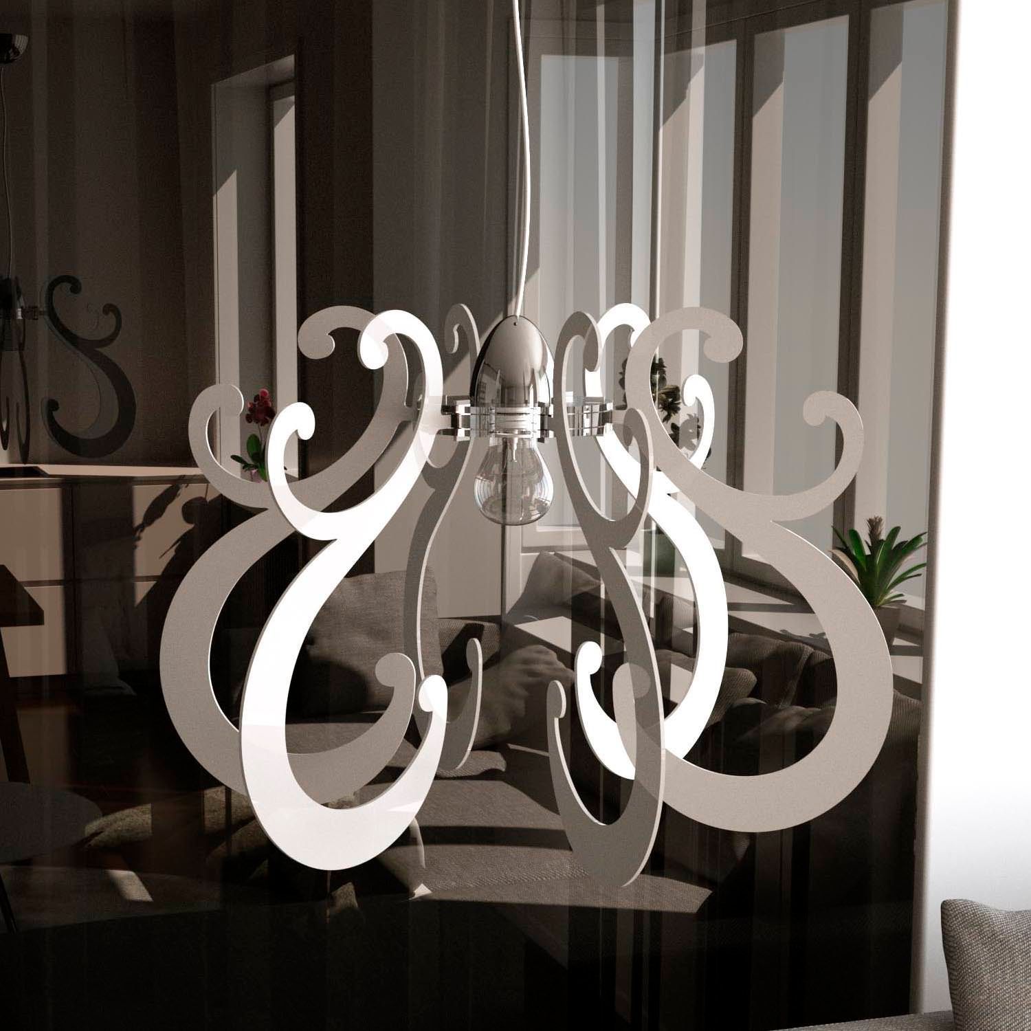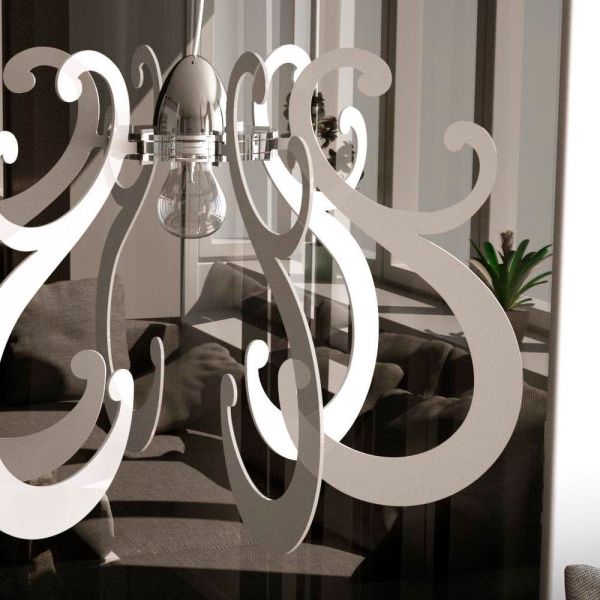 Le dimensioni — Ø56 cm di diametro e 40 cm di altezza — rendono Molly un lampadario importante ma equilibrato, perfetto per diventare il punto focale di un soggiorno, una cucina moderna, un’area pranzo o una camera da letto. Il cavo elettrico regolabile fino a 80 cm offre la massima flessibilità di installazione: può essere sospeso più in basso sopra un tavolo per un effetto scenografico, oppure più in alto per illuminare l’intero ambiente in modo uniforme.