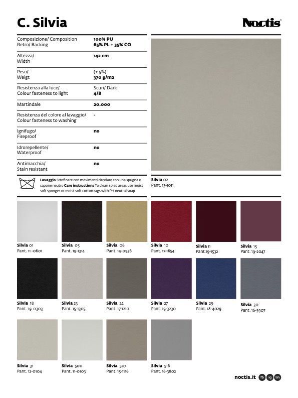 Colori: tessuti Categoria C, i campioni dei colori disponibili si trovano nella sezione "Allegati" e nella galleria delle foto. Specificare il codice del colore nel campo note durante la fase d'acquisto.
