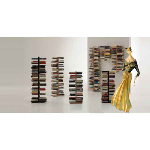 Realizzata in massello di faggio naturale o tinto nero, Zia Bice abbina materiali pregiati e linee contemporanee, creando un equilibrio perfetto tra solidità e leggerezza estetica. Le mensole orizzontali, fissate ai lati della colonna centrale, permettono di disporre libri, riviste o oggetti in pacchetti ordinati, aggiungendo movimento e personalità alla composizione.
