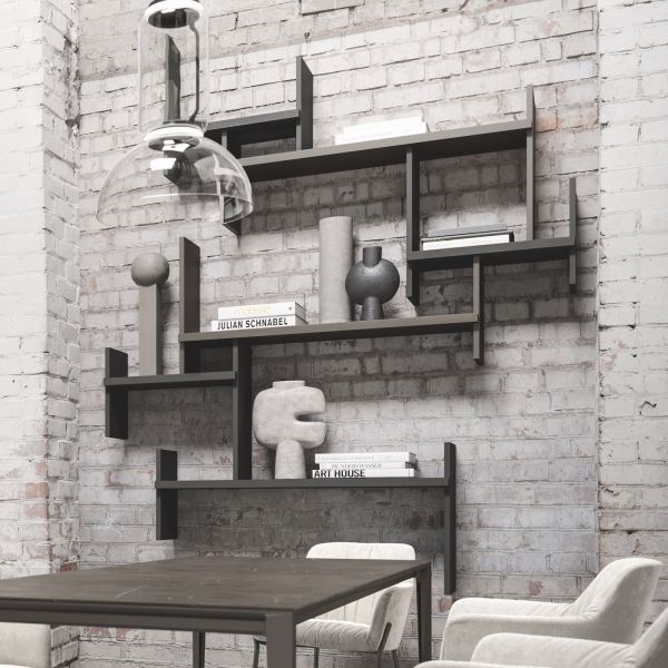 Disponibile in tre lunghezze – 61 cm, 122 cm e 184 cm – e dotate di separatori laterali, la mensola Upper consente di comporre pareti personalizzate, ideali per living, studi o zone notte moderne.