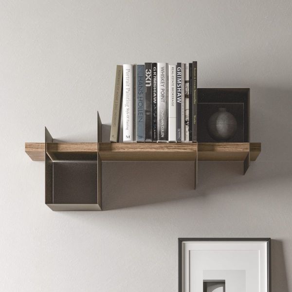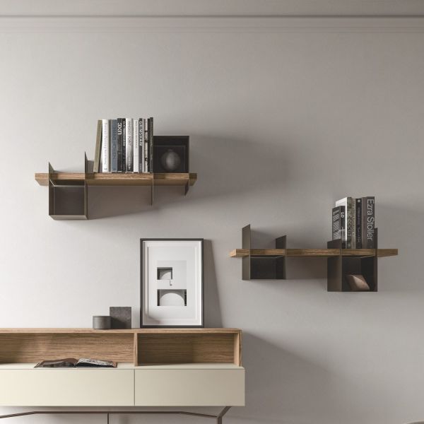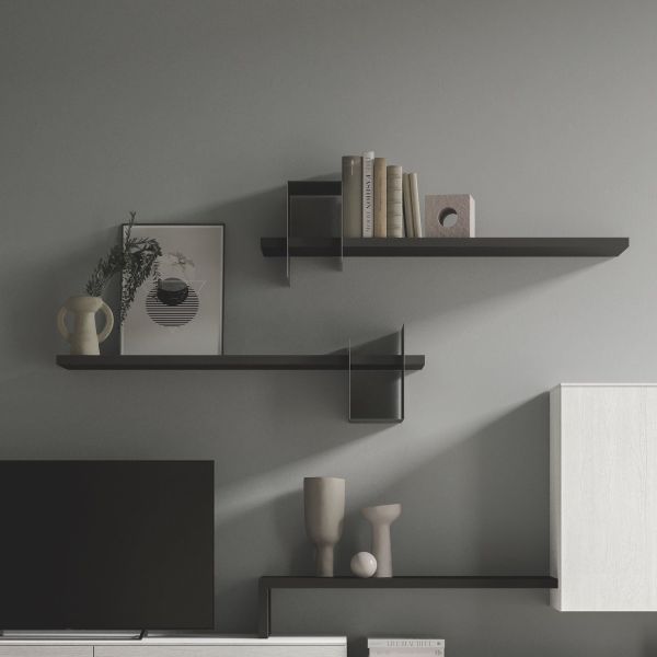 La mensola Terry è un complemento d’arredo moderno e raffinato, perfetto per creare composizioni a muro eleganti e personalizzate. Realizzata in pannelli di legno spessore 35 mm con perni di supporto a scomparsa, è disponibile in quattro larghezze (61, 92, 122, 153 cm) e può essere porta oggetti in lamiera d'acciaio laccato opaco (porta CD o porta DVD, ma che possono essere utilizzati anche per libri ed oggetti o semplicemente come separatori). Le finiture pregiate – essenze di legno, colori opachi, materici e laccati – si adattano a ogni stile d’arredo. La mensola Terry unisce funzionalità e design Made in Italy, ideali per soggiorni, studi e living moderni.