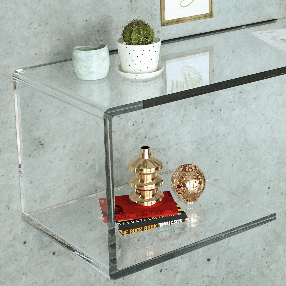 La mensola sagomata Benny rappresenta l’incontro perfetto tra design contemporaneo e artigianalità di qualità, ideale per valorizzare qualsiasi ambiente con un tocco di eleganza e leggerezza. Realizzata in plexiglass PMMA di alta qualità con spessore 20 mm, si distingue per la sua trasparenza cristallina e per la capacità di riflettere la luce, creando un effetto visivo unico e sofisticato.
