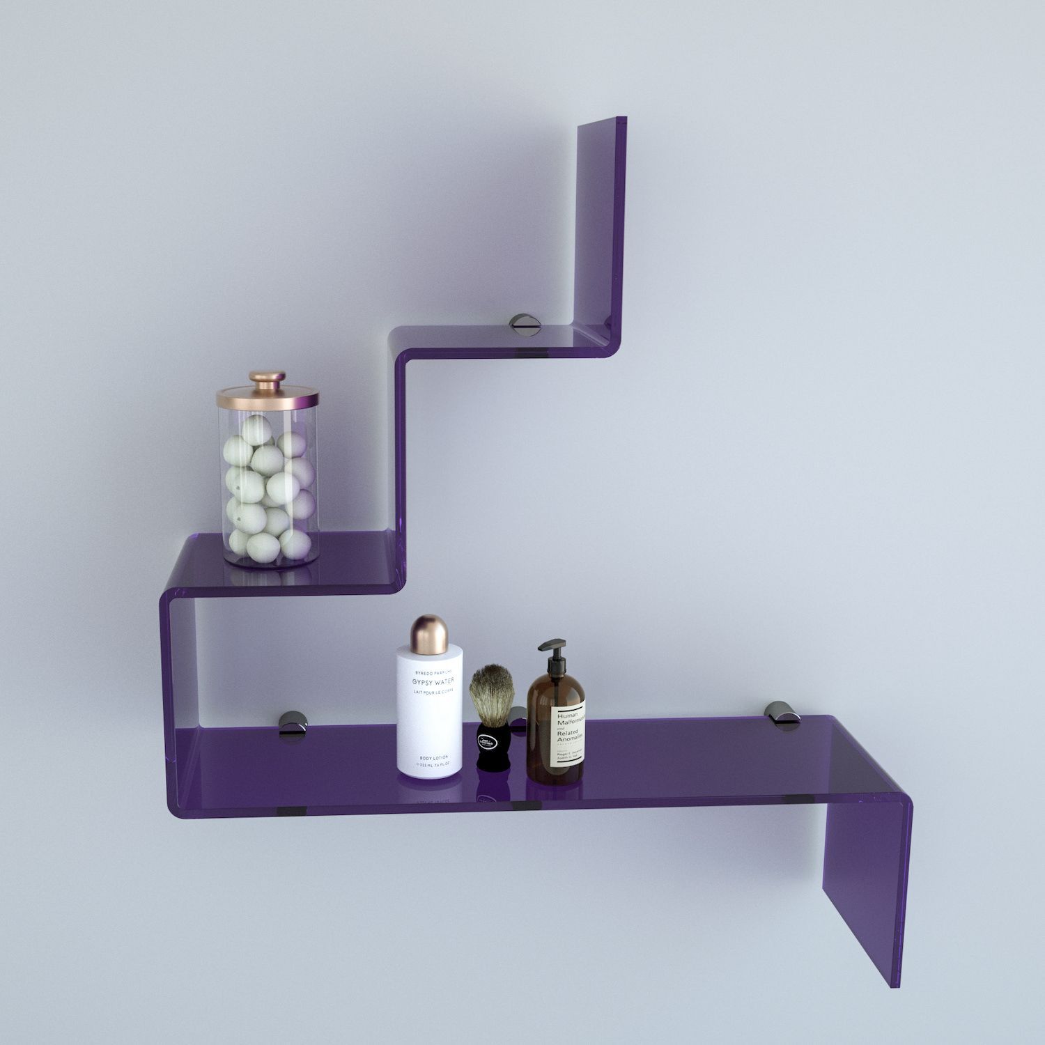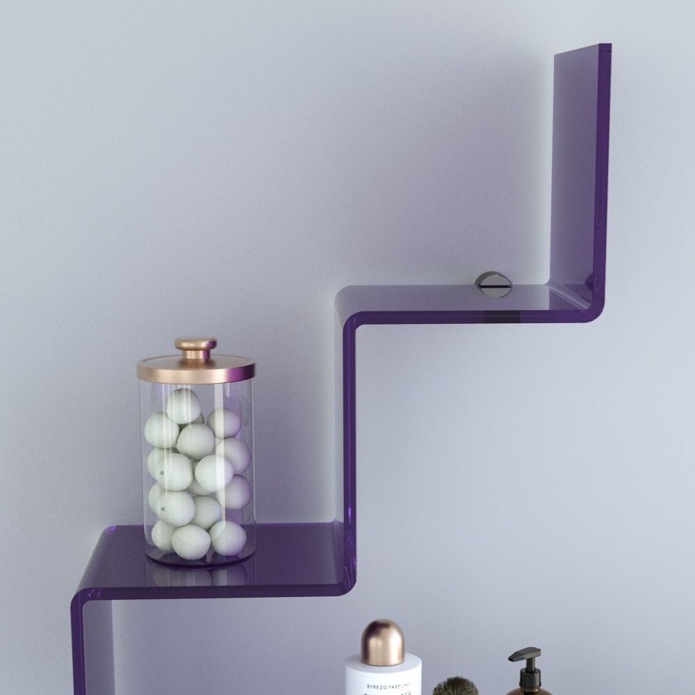 Questa forma particolare non solo la rende esteticamente accattivante, ma offre anche piani di appoggio pratici e versatili, ideali per libri, piante, oggetti decorativi o prodotti per la cura personale. Disponibile in una vasta gamma di finiture, tra cui trasparente, bianco, nero, fumé grigio, viola, fucsia, prugna, giallo, blu, azzurro, verde, bronzo, rosso e arancione, Slalom 1 consente infinite possibilità di personalizzazione cromatica, adattandosi perfettamente a ogni ambiente della casa: