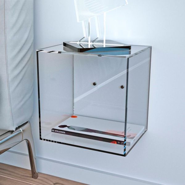 Proposto in tre misure — L20 x P20 x H20 cm, L25 x P20 x H25 cm, L30 x P20 x H30 cm — Gimmi si adatta facilmente a qualsiasi spazio: può essere installato singolarmente come mensola, oppure combinato con altri cubi per creare una composizione modulare dal forte impatto visivo. La trasparenza del plexiglass dona luminosità e leggerezza, ampliando visivamente gli spazi, mentre la robustezza del materiale garantisce stabilità e durata nel tempo. Ogni pezzo è realizzato artigianalmente in Italia, con la precisione e la cura tipiche del design Made in Italy.