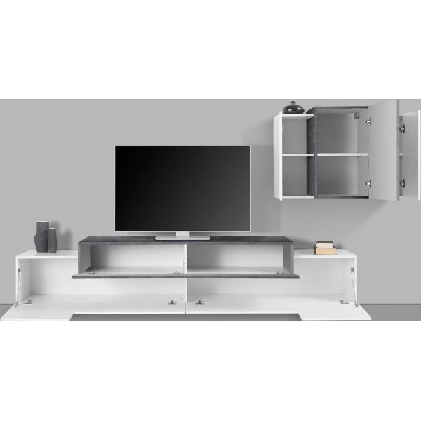 Krisen 240 White Report è una parete attrezzata moderna, realizzato in solido MDF (particelle di legno) in finitura bianco lucido e report. Ottima per televisori di grandi dimensioni, è un prodotto 100% made in Italy, sinonimo di qualità e design moderno.