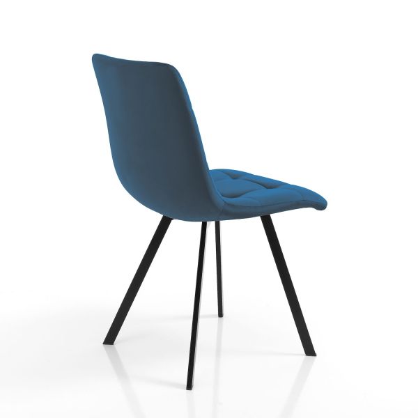 Miracle Blu è un set di 4 sedie imbottite per sala da pranzo, moderne ed eleganti, con struttura in metallo verniciato nero opaco e morbido tessuto effetto velluto di colore blu, non sfoderabile. La confezione è formata da 4 sedie, non è possibile acquistare una quantità inferiore o che non sia multipla di 4. Il prezzo esposto riferito ad un set di 4 sedie.