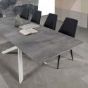 Royal Maxi è un tavolo da pranzo allungabile dalle ampie dimensioni, ideale per l'uso quotidiano in sala da pranzo. E' disponibile in due differenti colori delle gambe ad incrocio ed in 3 differenti finiture per il piano superiore. Le allunghe sono incorporate nella struttura. Il sistema di allunga è dotato di piano e carrello traslante e permette di avere la base sempre in posizione centrale.