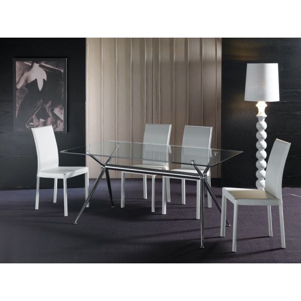 Una solida struttura in metallo cromato che sostiene un piano in vetro trasparente, per un tavolo scrivania elegante e moderno. Puoi utilizzarlo come tavolo da pranzo o tavolo da cucina, oppure puoi pensare di voler arredare il tuo ufficio o studio professionale con una elegante scrivania. Glam è la soluzione di design per entrambe le soluzioni.