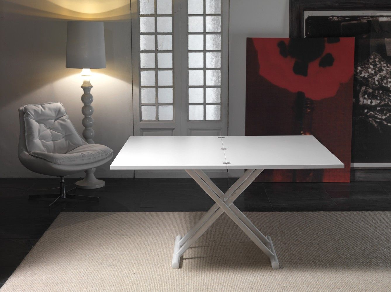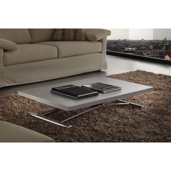 Vuoi un arredamento di dal design moderno e raffinato anche se vivi in un appartamento di piccole dimensioni? Grazie al tavolino da salotto trasformabile Mind, puoi rendere spettacolare l'arredo del tuo soggiorno e risparmi tanto spazio utile nella sala da pranzo! Puoi dire addio ai tavoli grandi ed ingombranti: se arrivano ospiti a cena, puoi trasformare il tavolino Mind, che diventa in poche mosse un tavolo da pranzo completo. Tavolino realizzato con struttura in metallo cromato o verniciato e piano in legno nobilitato o laccato. Misure: L110 x 70 (aperto 140) - H minima 25 / H massima 75 cm.